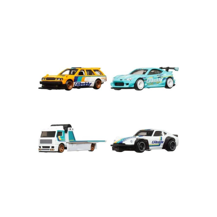 Zestawy Hot Wheels(R) Premium z pojazdami dla kolekcjonerów zawierają 4 pojazdy Hot Wheels(R) w opakowaniu z okienkiem, przez które widać zawartość. Każdy z pojazdów w skali 1:64 ma opony Real Riders, metalową konstrukcję i wysokiej jakości dekoracje, dzięki którym są doskonałe do zabawy oraz kolekcjonowania. W zestawach są 3 metalowe samochodziki i jeden pojazd Team Transport z takim samym motywem przewodnim. Fani mogą zebrać je wszystkie.
