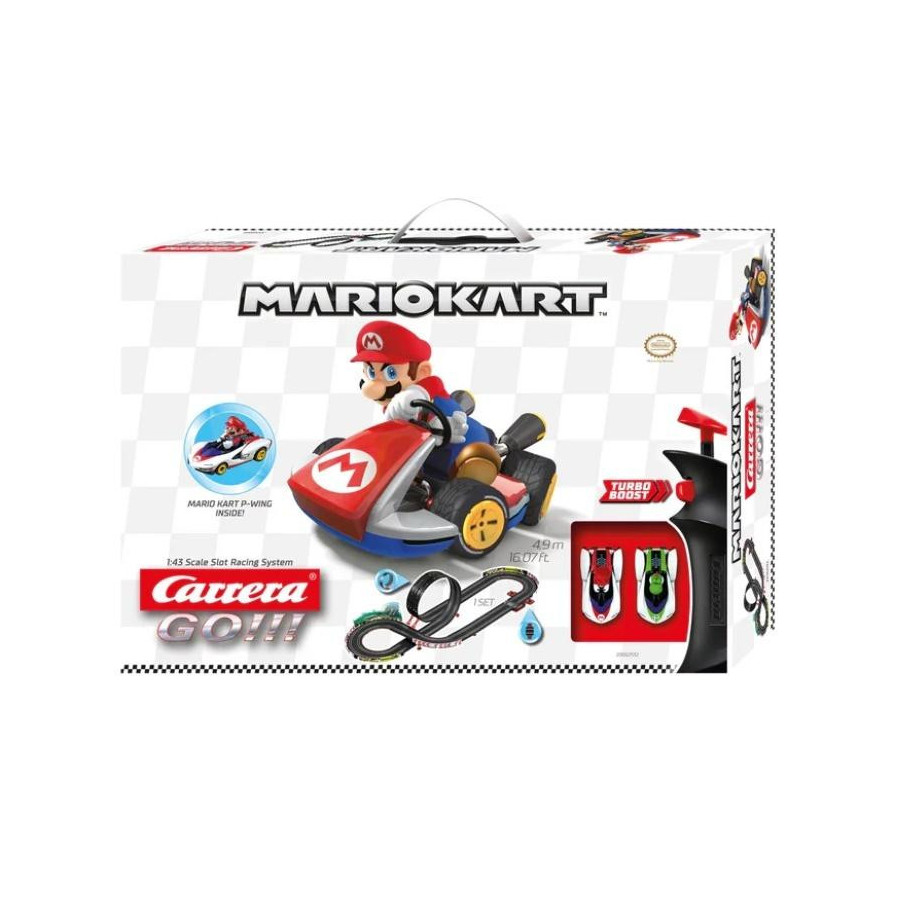 START!!! Czas na Mario i Yoshiego w tym zawrotnym wyścigu do mety! Za kierownicą stylowego gokarta P-Wing, wiernie odwzorowanego na popularnej grze wideo, kierowcy muszą zmierzyć się z 4,9-metrowym torem Carrera GO!!! z długimi prostymi, zakrętami i gigantyczną pętlą. Kto wygra?