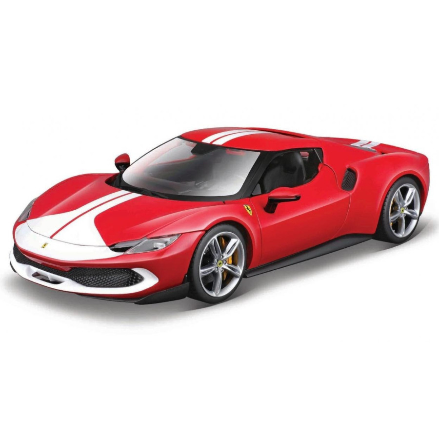 Ferrari 296 GTB Assetto Fiorano oryginalny produkt marki Bburago, oficjalny, licencjonowany wzór pojazdu, metalowy model z plastikowymi elementami, perfekcyjne odwzorowanie szczegółów. Ruchome elementy: maska, drzwi, bagażnik. Wymiary opakowania: długość 16,5cm, szerokość 33cm, wysokość 13cm. Długość pojazdu ok. 26cm. Ferrari 296 GTB Assetto Fiorano to wersja skierowana dla entuzjastów jazdy sportowej, oferująca zoptymalizowane osiągi i wyjątkowe cechy. Została stworzona z myślą o torowych doświadczeniach, a każdy jej element jest poddany precyzyjnemu tuningu. Pod maską Assetto Fiorano kryje się zaawansowany układ napędowy, który łączy mocny silnik V6 biturbo z elektrycznym, dostarczając imponującą łączną moc 830 KM. Ferrari 296 GTB Assetto Fiorano to nie tylko samochód sportowy, ale prawdziwe dzieło sztuki inżynieryjnej, które podkreśla pasję Ferrari do doskonałości i wyścigowej tradycji. To idealny wybór dla tych, którzy pragną przeżyć intensywne doświadczenia na torze, jednocześnie czerpiąc radość z luksusowego i precyzyjnie wykonanego pojazdu.