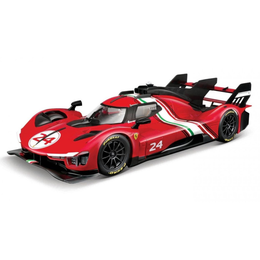 Ferrari 499P #50 LMH FIA 24h Le Mans Hypercar 2024 1:18 18-16303 Ferrari 499P Modificata oficjalny, licencjonowany wzór pojazdu, metalowy model z plastikowymi elementami, perfekcyjne odwzorowanie szczegółów. Model umieszczony na plastikowej podstawce z nazwą pojazdu. Ruchome elementy: drzwi. Długość samochodu: ok. 27cm. Wymiary opakowania: 34 x 18,5 x 14cm. Ferrari 499P Modificata to wyjątkowy samochód, który wykracza poza granice tradycyjnych supersamochodów i torowych maszyn. Jest to niezwykle limitowana edycja , przeznaczona wyłącznie na tor, stworzona z myślą o wąskiej grupie klientów, którzy poszukują doświadczeń na poziomie prototypów wyścigowych. Bazuje na zwycięskim modelu Ferrari 499P , który wygrał legendarne 24-godzinne wyścigi Le Mans, ale nie jest objęty restrykcjami narzucanymi przez regulaminy wyścigowe. Oznacza to, że jego hybrydowy układ napędowy, składający się z silnika V6 i silnika elektrycznego, może swobodnie rozwijać pełną, ekstremalną moc bez ograniczeń. 499P Modificata to synonim czystej, nieokiełznanej wydajności , w którym aerodynamika i technologia działają w idealnej harmonii, aby dostarczyć najbardziej surowe i ekscytujące wrażenia z jazdy na torze.