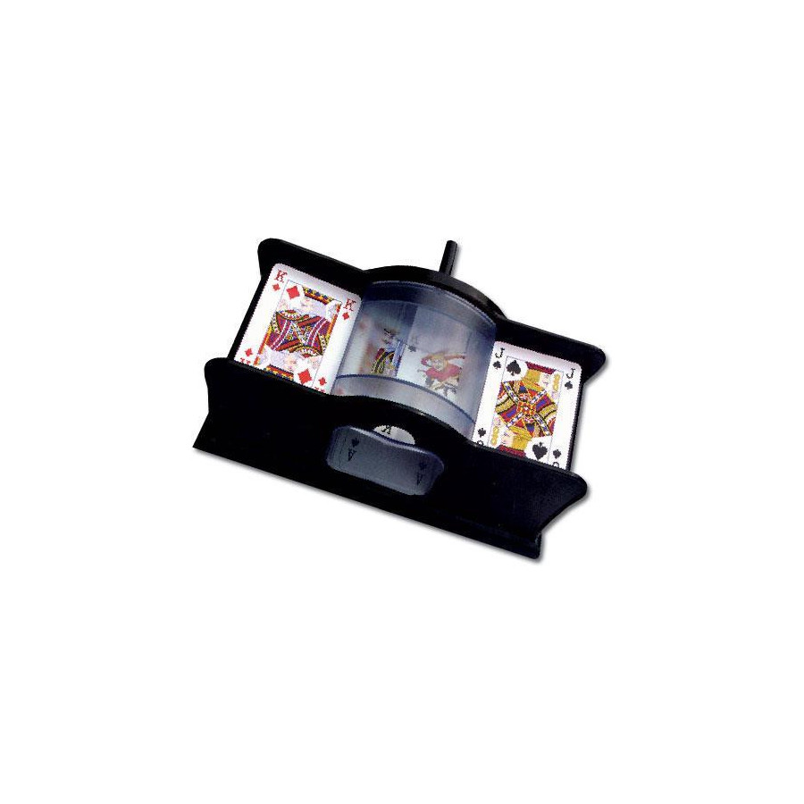 Tradycyjna maszynka do tasowania kart. Nie wymaga baterii. Wystarczy zakręcić korbką, by talia została potasowana.