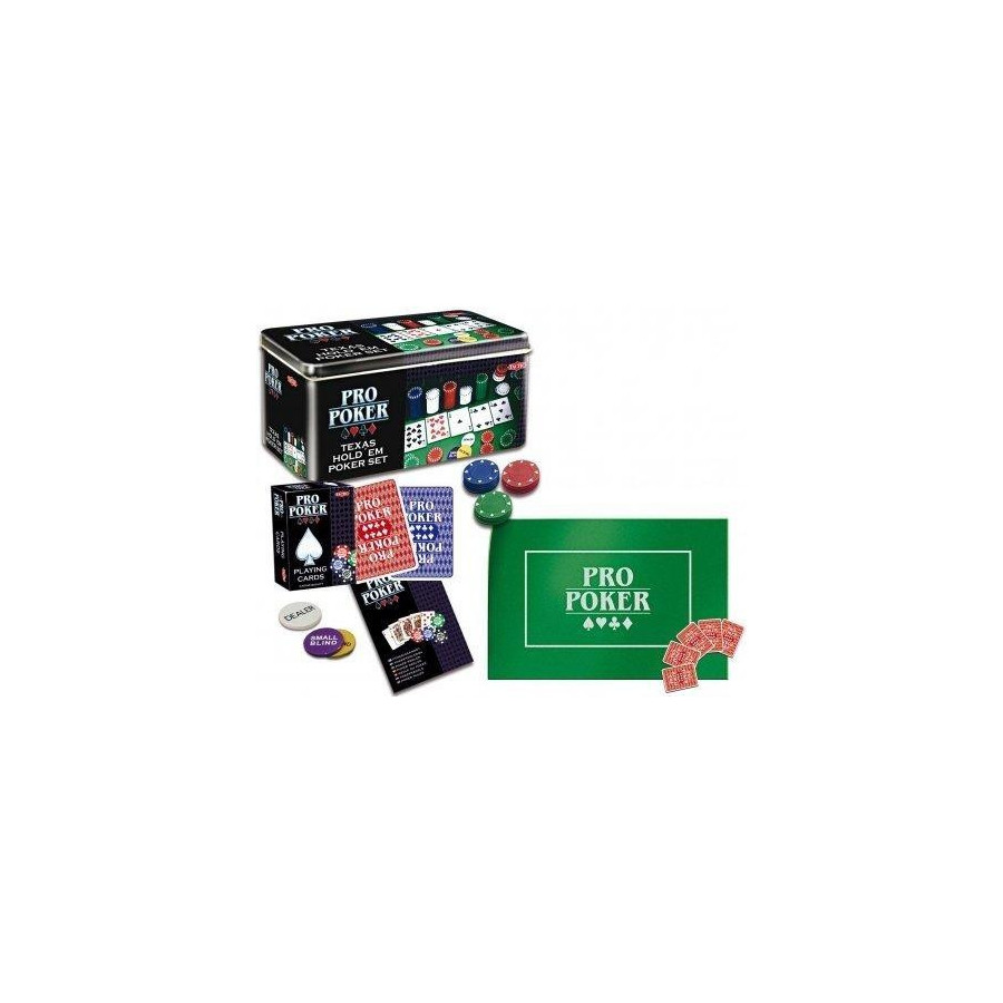 200 żetonów w różnych kolorach, jedną talie do gry (jakość kasynowa), podajnik do żetonów, żeton rozdającego, żeton mała ciemna, żeton duża ciemna, zasady gry.Instrukcja gry w języku polskim dostępna na stronie internetowej producenta