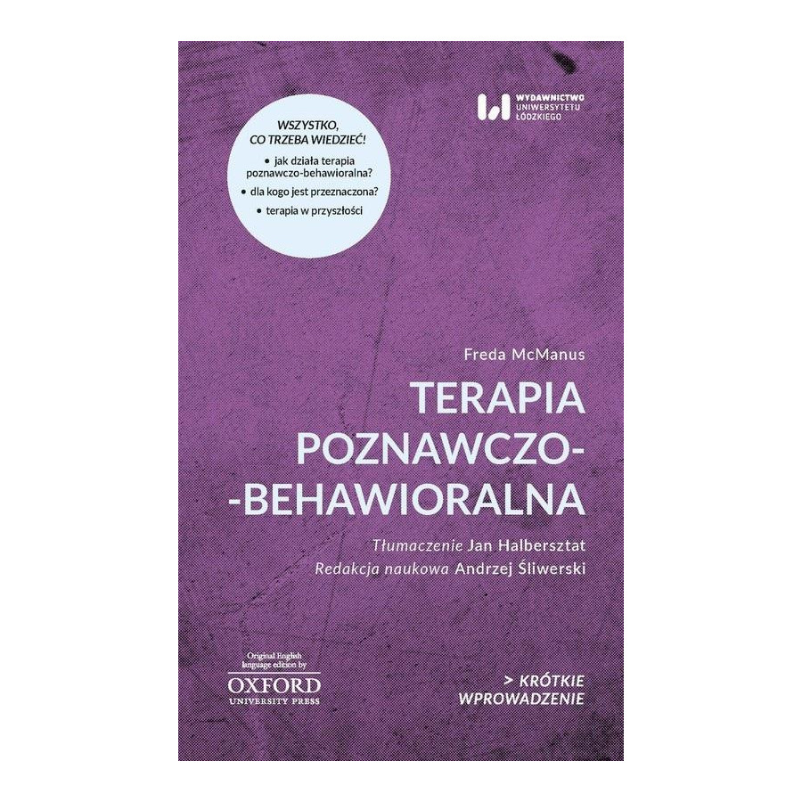 Terapia poznawczo-behawioralna (CBT) jest formą terapii psychologicznej. To Krótkie Wprowadzenie zawiera przegląd tego, czym jest CBT, skąd się wzięła, czym się zajmuje i kiedy może być stosowana. Analizuje również, jak musi się ona nadal rozwijać, aby sprostać przyszłym wyzwaniom. Patrząc w przyszłość, Freda McManus omawia również, w jaki sposób skala problemów ze zdrowiem psychicznym i koszty tradycyjnych form terapii skłoniły ją do badań alternatywnych form CBT, które mają potencjał dotarcia do szerszej publiczności na całym świecie. * Interdyscyplinarna seria KRÓTKIE WPROWADZENIE piórem uznanych ekspertów skupionych wokół Uniwersytetu Oksfordzkiego przybliża aktualną wiedzę na temat współczesnego świata i pomaga go zrozumieć. W atrakcyjny sposób prezentuje najważniejsze zagadnienia XXI w. od kultury, religii, historii przez nauki przyrodnicze po technikę. To publikacje popularnonaukowe, które w formule przystępnej, dalekiej od akademickiego wykładu, prezentują wybrane kwestie. Książki idealne zarówno jako wprowadzenie do nowych tematów, jak i uzupełnienie wiedzy o tym, co nas pasjonuje. Najnowsze fakty, analizy ekspertów, błyskotliwe interpretacje. Opiekę merytoryczną nad polską edycją serii sprawują naukowcy z Uniwersytetu Łódzkiego: prof. Krystyna Kujawińska Courtney, prof. Ewa Gajewska, prof. Aneta Pawłowska, prof. Jerzy Gajdka, prof. Piotr Stalmaszczyk.