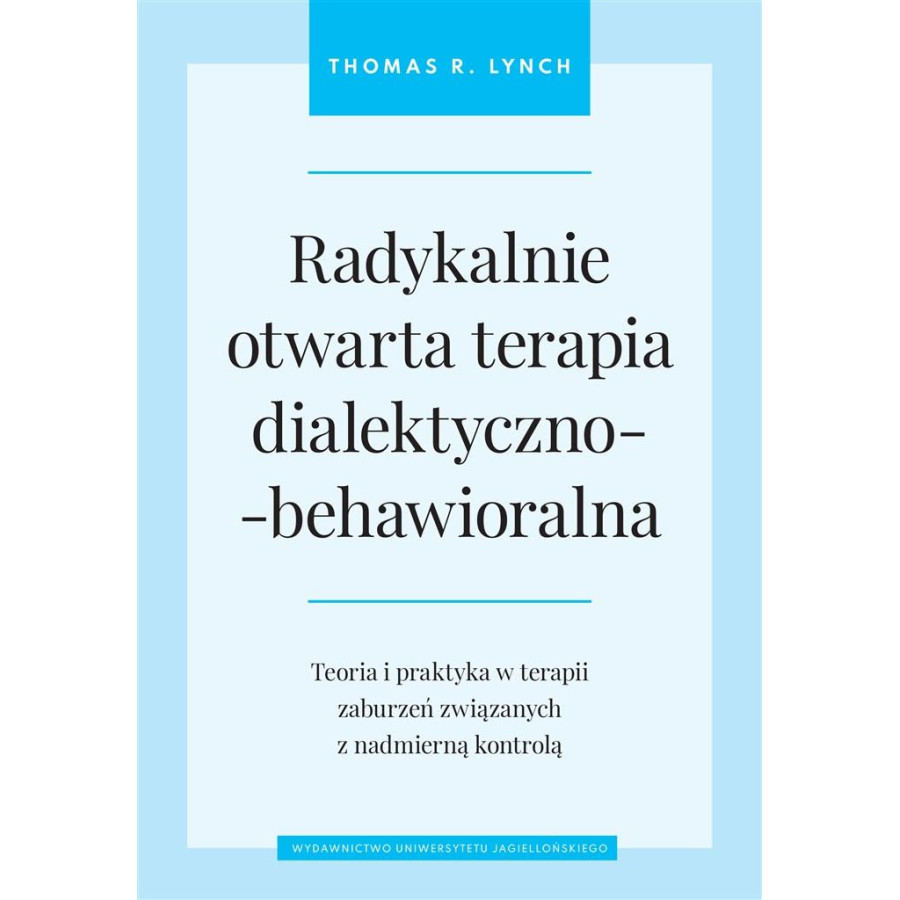 Stworzona przez Thomasa R. Lyncha radykalnie otwarta terapia dialektyczno-behawioralna (RO DBT) to przełomowe, transdiagnostyczne podejście skupione na pomocy pacjentom cierpiącym z powodu zaburzeń charakteryzujących się nadmierną kontrolą (OC). Należą do nich obsesyjno-kompulsyjne zaburzenie osobowości, anoreksja czy chroniczna depresja, które są wyjątkowo oporne na terapię. Często wiążą się z izolacją społeczną, sztywnością poznawczą, niechęcią do podejmowania ryzyka, kompulsywną potrzebą organizacji czy hiperperfekcjonizmem. RO DBT pomaga przezwyciężyć te trudności i daje szansę na odnalezienie równowagi.