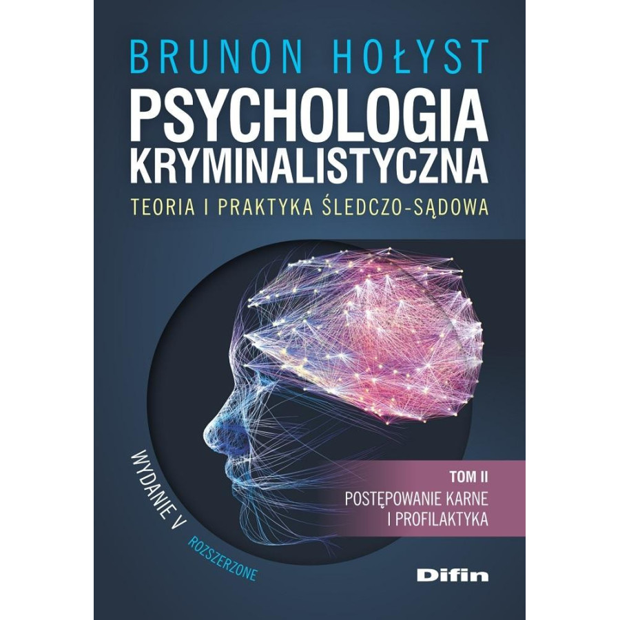 Psychologia kryminalistyczna stanowi nową dziedzinę psychologii stosowanej, mającą własny obszar badań i charakteryzującą się ścisłymi powiązaniami z tradycyjnie rozróżnianymi działami psychologii. Zakres psychologii kryminalistycznej obejmuje psychologiczne aspekty kryminalistyki, czyli nauki o metodach ustalania faktu przestępstwa, sposobu jego popełniania, wykrywania sprawców i zapobiegania przestępstwom oraz innym ujemnym zjawiskom społecznym. Specyfika psychologii kryminalistycznej wynika w znacznej mierze ze specyfiki samej kryminalistyki. Wiadomo, że kryminalistyka jest nauką w znaczącym stopniu praktyczną. Niemniej jednak nie jest jedynie uogólnieniem praktyki śledczej, co niewątpliwie ograniczałoby lub wręcz uniemożliwiałoby jej rozwój. Wydanie 5 rozszerzone zostało o nowe zagadnienia i bibliografię. Tom 2 obejmuje problematykę postępowania karnego i profilaktykę. Należy zwrócić uwagę na potrzebę uzyskiwania osobowego materiału dowodowego przez stosowanie racjonalnych metod przesłuchania świadków i podejrzanych. W książce poświęcono wiele miejsca psychologicznym podstawom zapobiegania przestępczości i systemom profilaktyki. Uwzględniono także działalność prywatnych służb ochrony w niektórych państwach europejskich.