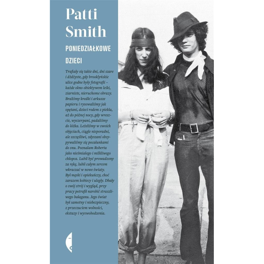 Było to lato, gdy umarł Coltrane, lato miłości i zamieszek, lato, gdy przypadkowe spotkanie na Brooklynie pchnęło dwoje młodych ludzi na drogę sztuki, miłości i wspólnej pracy. Patti Smith została poetką i piosenkarką, a Robert Mapplethorpe rozwijał swój prowokacyjny styl w fotografii. Niewinni, oddani sztuce, przemierzali Nowy Jork od Coney Island po Czterdziestą Drugą Ulicę, aż dotarli do słynnego okrągłego stołu w lokalu Kansas City, w którym brylował krąg przyjaciół i wyznawców Andy'ego Warhola. W 1969 roku para zamieszkała w hotelu Chelsea i weszła do środowiska ludzi okrytych - dobrą i złą - sławą, wpływowych artystów z barwnej cyganerii. To tam dwoje dzieciaków zawarło pakt, że będą się o siebie troszczyć. Poniedziałkowe dzieci zaczynają się jako historia miłosna, a kończą jako elegia. To także hołd złożony Nowemu Jorkowi na przełomie lat sześćdziesiątych i siedemdziesiątych, jego pięknu i jego demonom. To prawdziwa baśń, portret dwojga młodych artystów w przededniu sławy.
