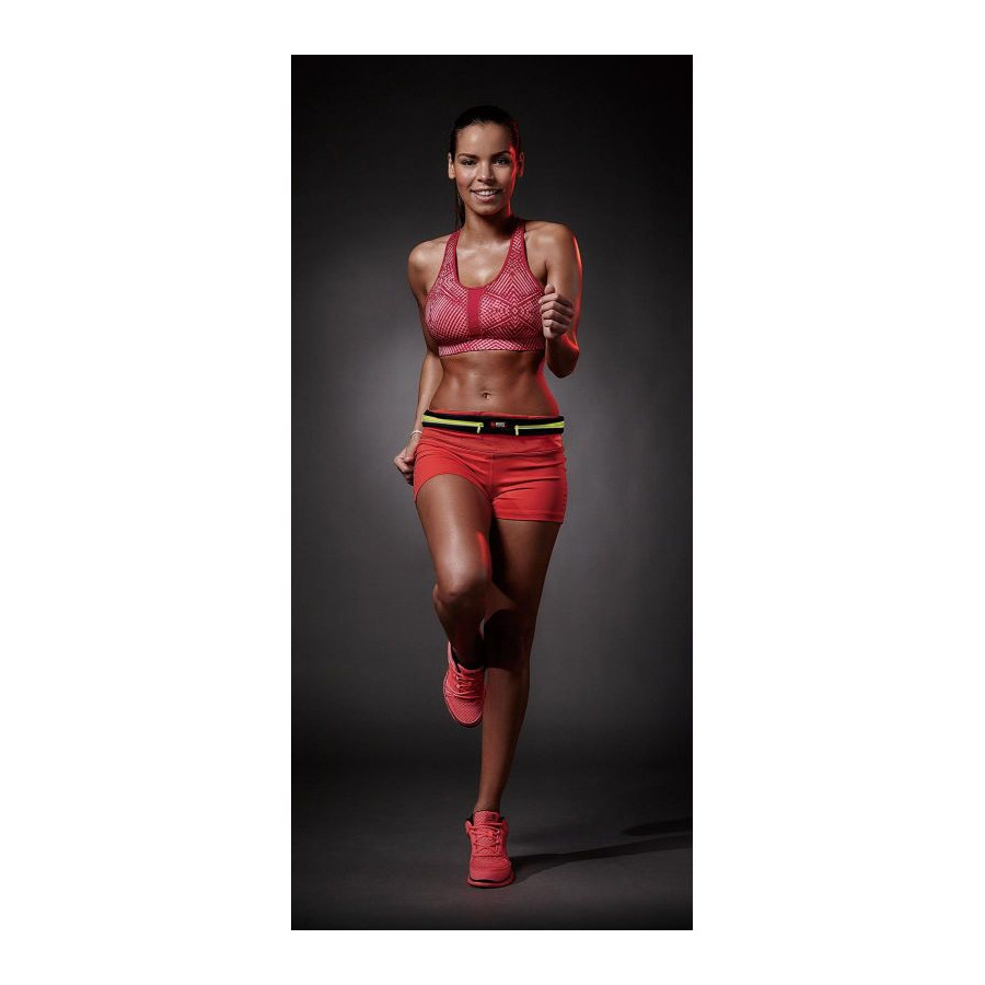 Zakładany na biodra, wygodny pas doskonale nadaje się do przechowywania drobnych akcesoriów podczas treningu. Elementy wykonane z odblaskowych materiałów zapewniają bezpieczeństwo w trakcie treningu.