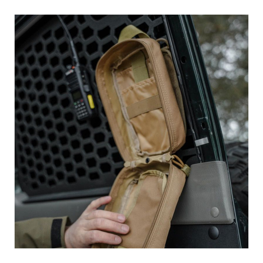 - Bardzo popularna i wszechstronna taktyczna apteczka zrywana wykonana z wytrzymałego i odpornego na uszkodzenia poliestru.