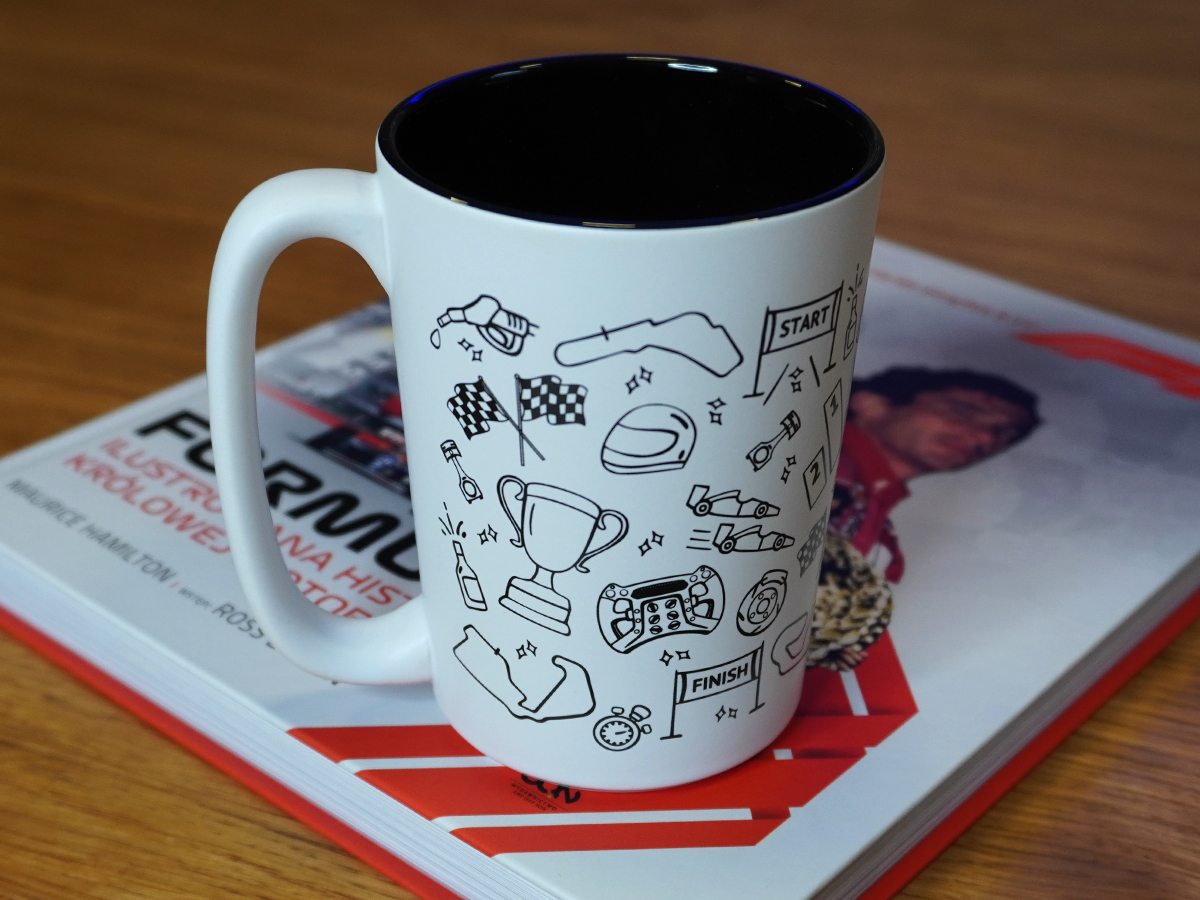 Ten potężny kubek pasuje do fanów F1, którzy nie boją się długich zakrętów!