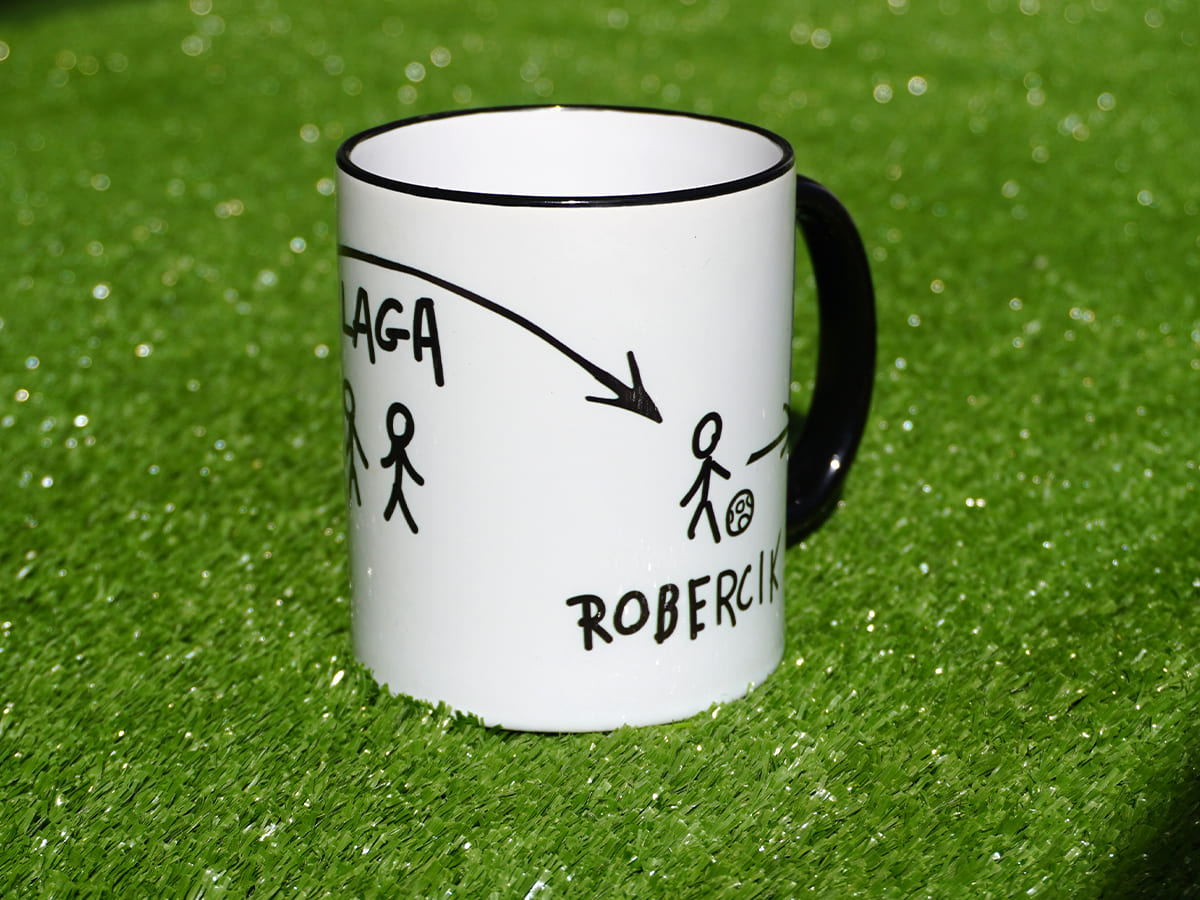To zabawny kubek związany z piłką nożną, którego nie znajdziesz nigdzie indziej. Marzenie każdego sympatyka memów. Bo jest tylko jedna niezawodna taktyka - "Laga na Robercika!" Idealnie sprawdzi się jako prezent w zestawie z książką "Nienasycony. Lewandowski".