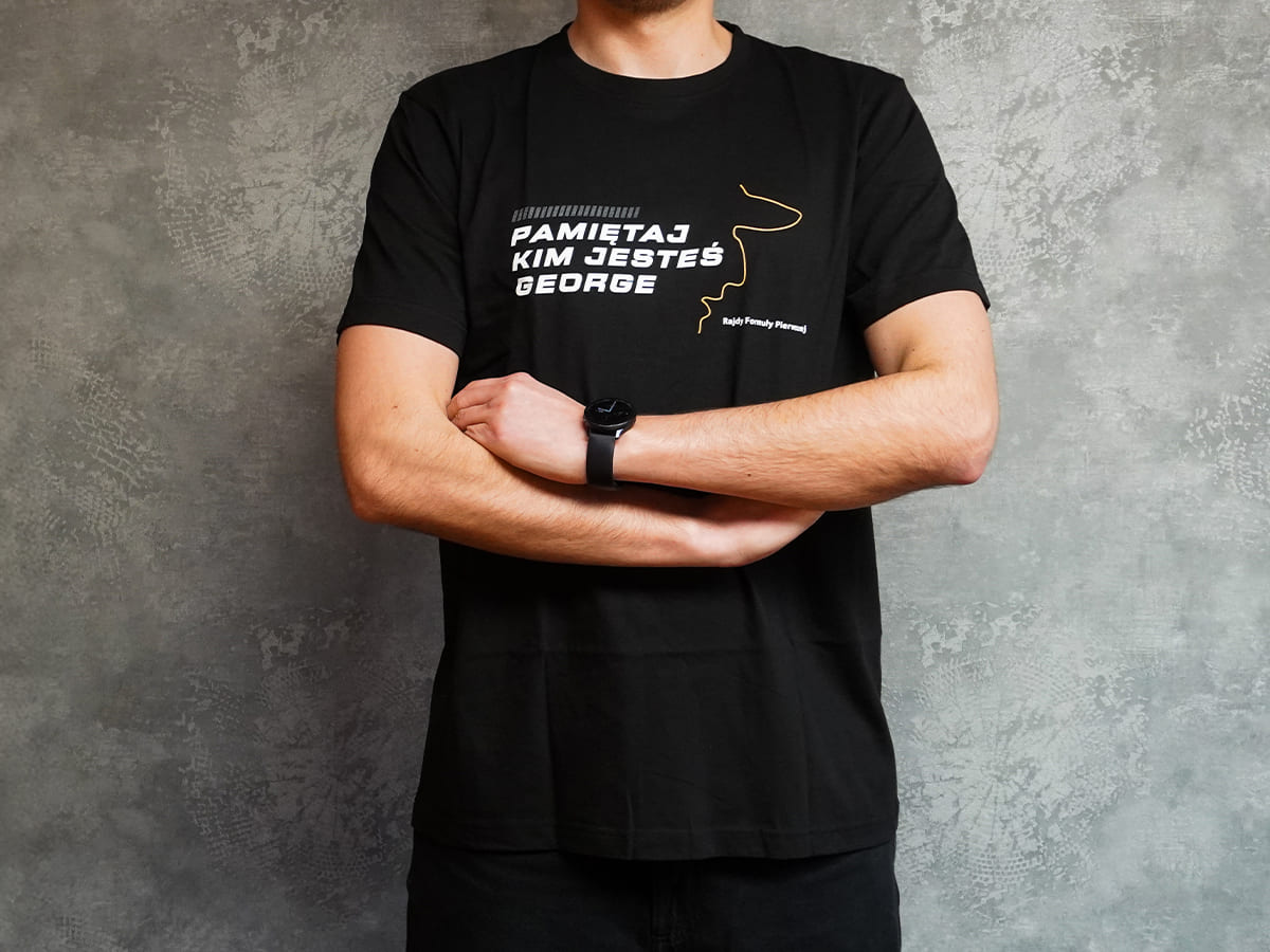 W 100% bawełniana czarna koszulka stworzona dla fanów F1 i sympatyków Youtubowego kanału Rajdy Formuły Pierwszej.