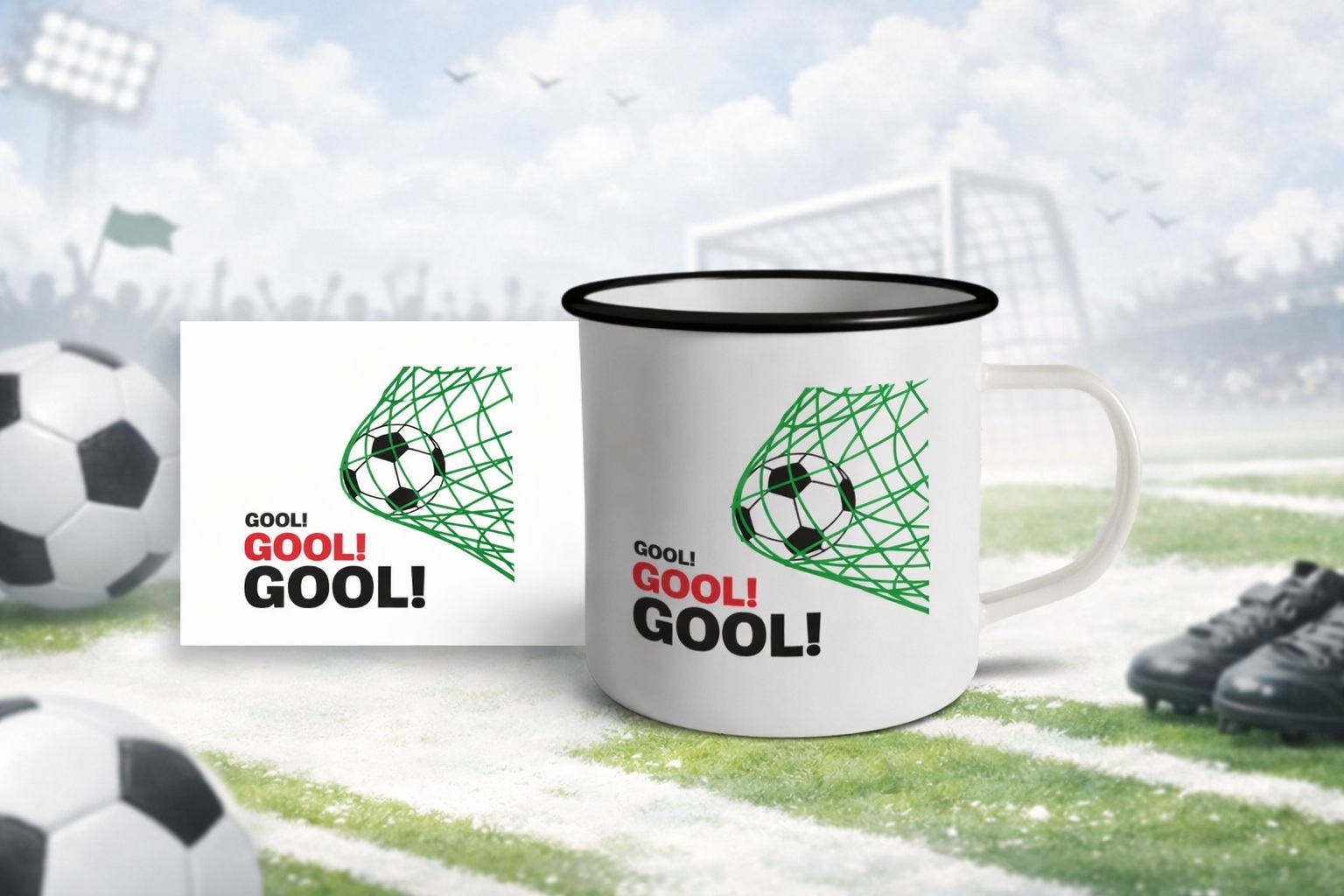 Charakterystyczny napis „Gool” przywołuje te niezapomniane momenty, gdy piłka wpada do siatki, serce bije szybciej, a stadion eksploduje radością.