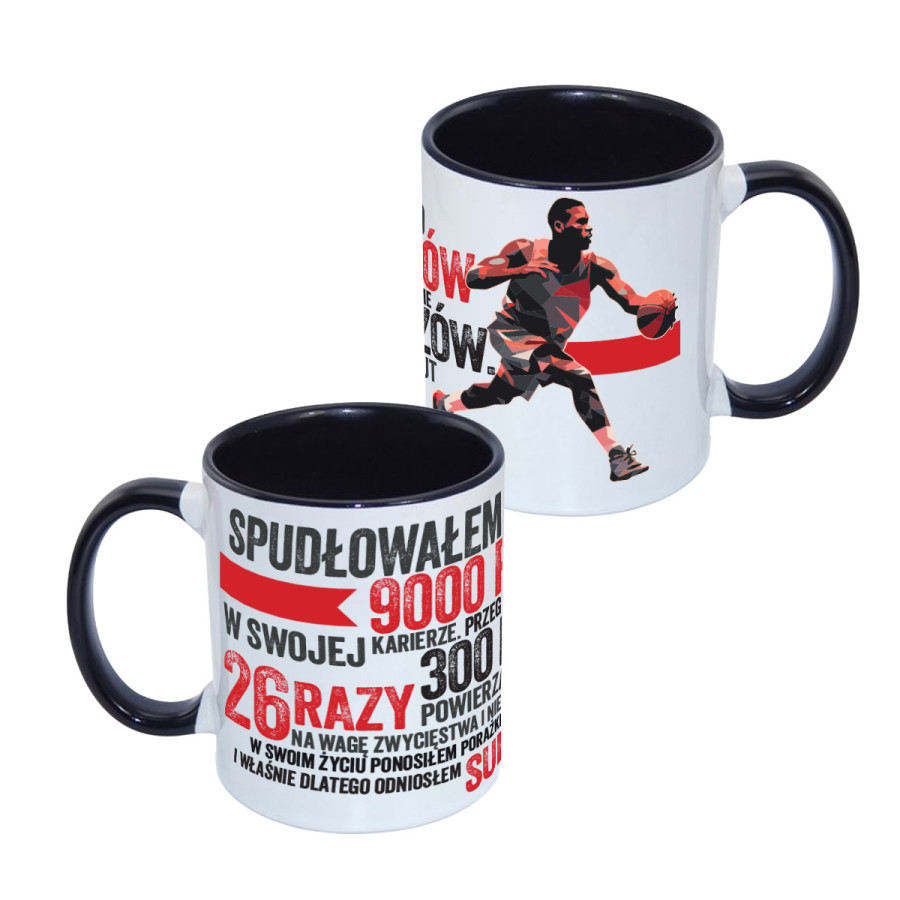 Ten kubek to jak rzut w kluczowym momencie – idealny dla każdego fana koszykówki, który przypomina sobie, że sukces to efekt wytrwałości i podnoszenia się po porażkach.
