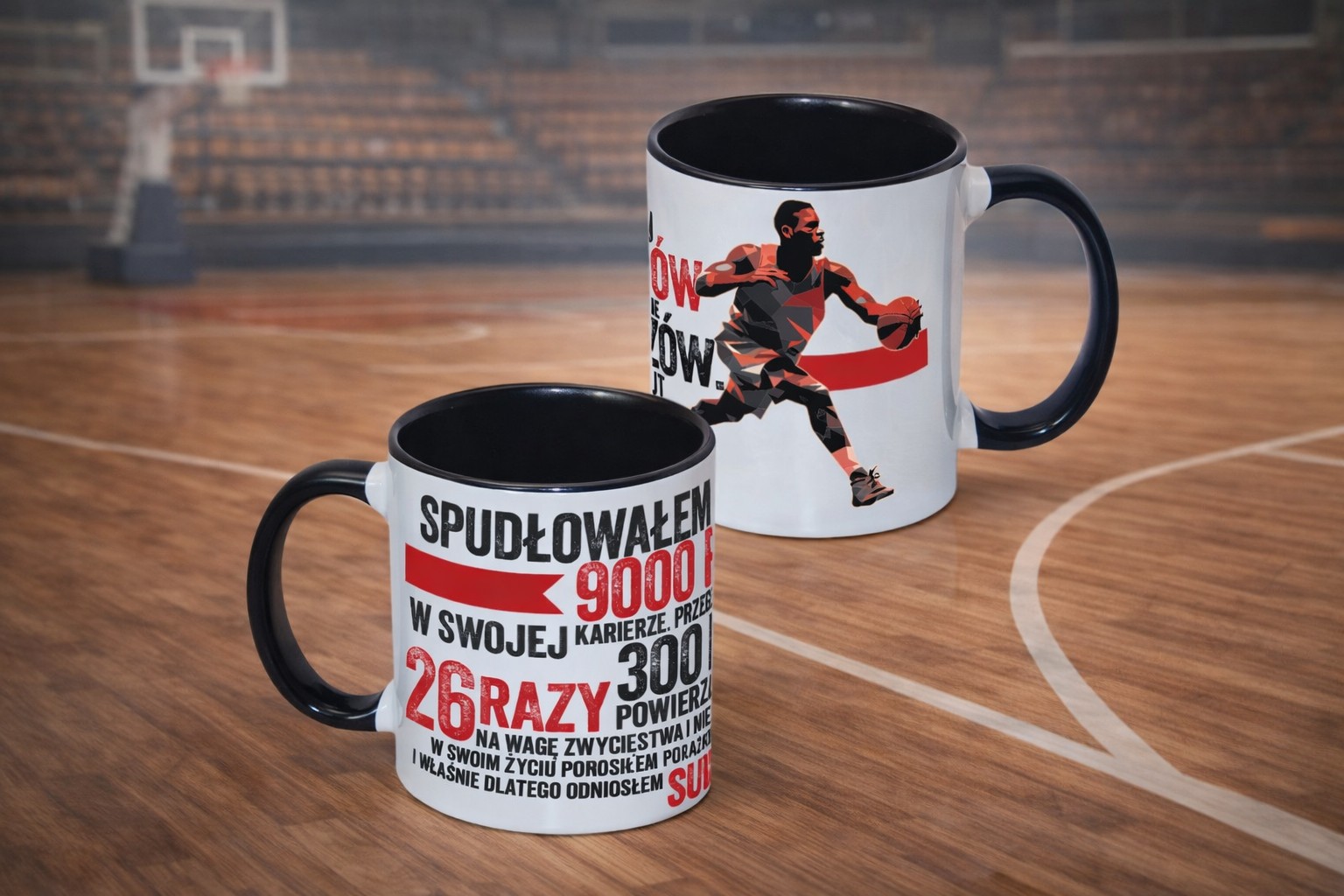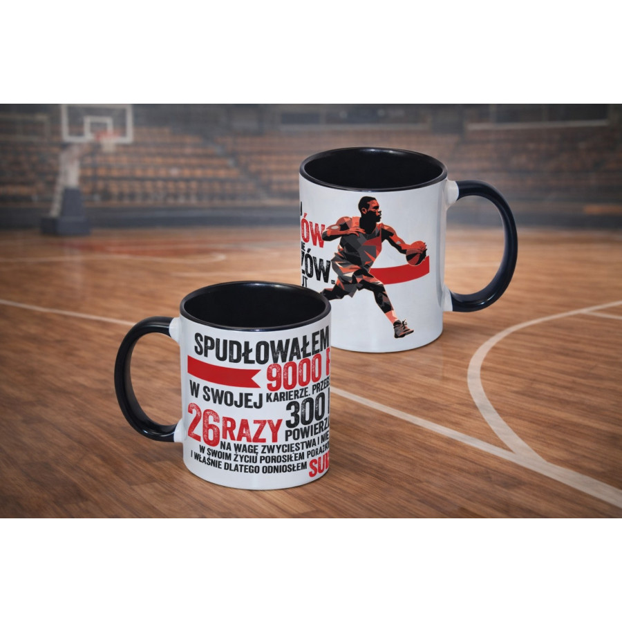 Ten kubek to jak rzut w kluczowym momencie – idealny dla każdego fana koszykówki, który przypomina sobie, że sukces to efekt wytrwałości i podnoszenia się po porażkach.