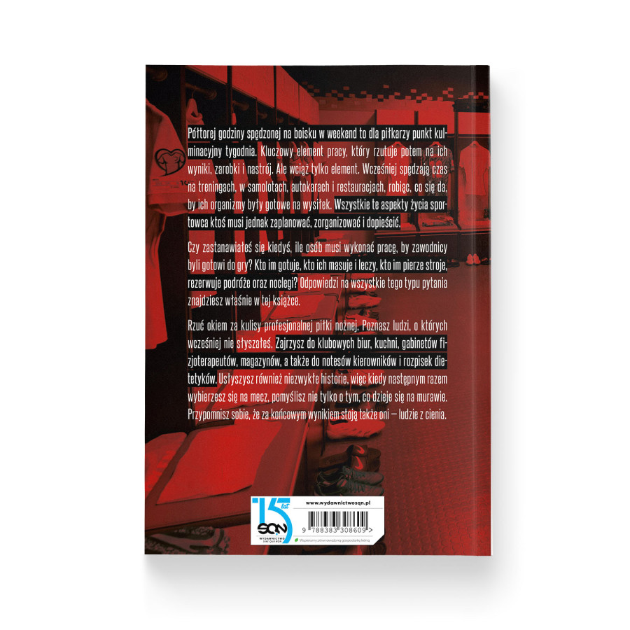 Książka sportowa Marcina Borzęckiego to fascynujące spojrzenie na kulisy wielkiego futbolu, na wszystko to, czego nie widać na ekranie telewizora czy z trybun stadionu. Autor zabiera nas w podróż po codzienności ludzi, którzy dbają o komfort i przygotowanie gwiazd boisk: kucharzy, fizjoterapeutów, analityków, kierowników drużyn, kitmanów czy masażystów. To oni dbają o rzeczy, bez których nie byłoby spektakularnych meczów, zwycięstw i trofeów. Dzięki tej pozycji poznajemy mechanizmy działania od kuchni takich drużyn jak Legia Warszawa, Wisła Kraków, Lech Poznań, Górnik Zabrze, Pogoń Szczecin czy reprezentacja Polski.