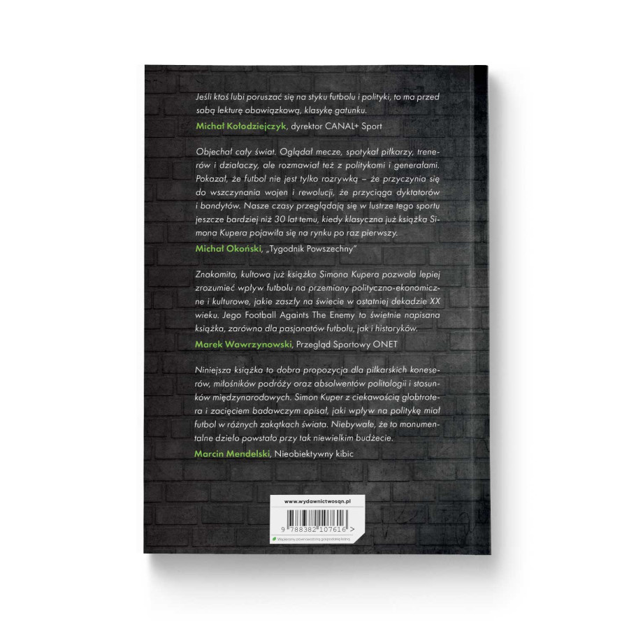 Znakomita, kultowa już książka Simona Kupera pozwala lepiej zrozumieć wpływ futbolu na przemiany polityczno-ekonomiczne i kulturowe, jakie zaszły na świecie w ostatniej dekadzie XX wieku. Jego Football Againts The Enemy to świetnie napisana książka, zarówno dla pasjonatów futbolu, jak i historyków.