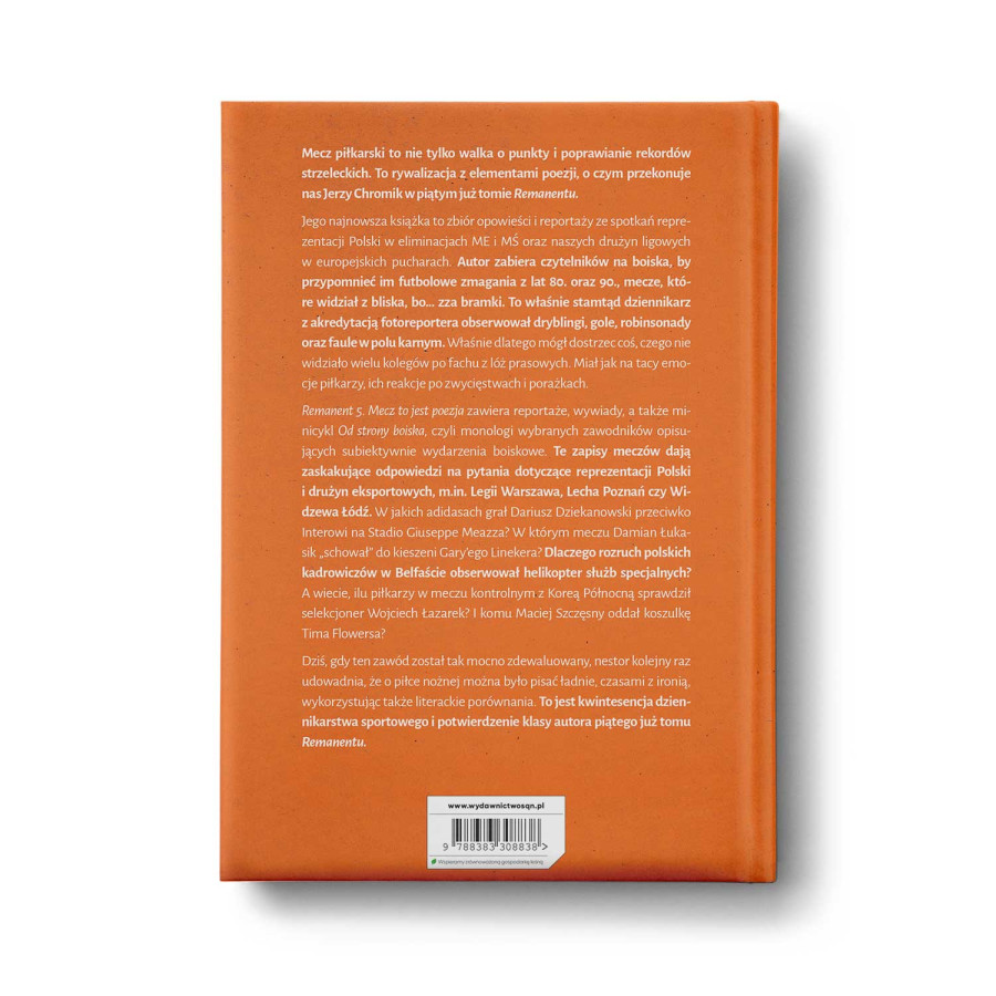 Remanent 5. Mecz to jest poezja zawiera reportaże, wywiady, a także minicykl Od strony boiska, czyli monologi wybranych zawodników opisujących subiektywnie wydarzenia boiskowe. Te zapisy meczów dają zaskakujące odpowiedzi na pytania dotyczące reprezentacji Polski i drużyn eksportowych, m.in. Legii Warszawa, Lecha Poznań czy Widzewa Łódź. W jakich adidasach grał Dariusz Dziekanowski przeciwko Interowi na Stadio Giuseppe Meazza? W którym meczu Damian Łukasik „schował” do kieszeni Gary’ego Linekera? Dlaczego rozruch polskich kadrowiczów w Belfaście obserwował helikopter służb specjalnych? A wiecie, ilu piłkarzy w meczu kontrolnym z Koreą Północną sprawdził selekcjoner Wojciech Łazarek? I komu Maciej Szczęsny oddał koszulkę Tima Flowersa?