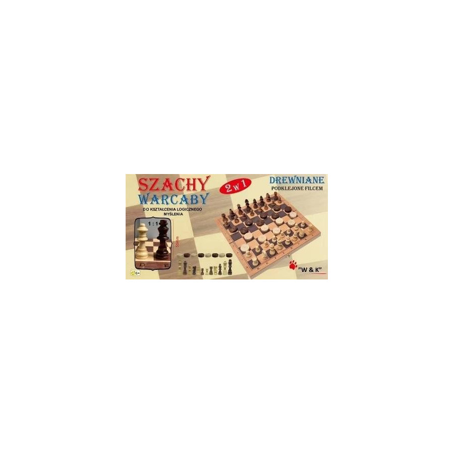 Szachy i warcaby 2w1 drewniane 29x29cm