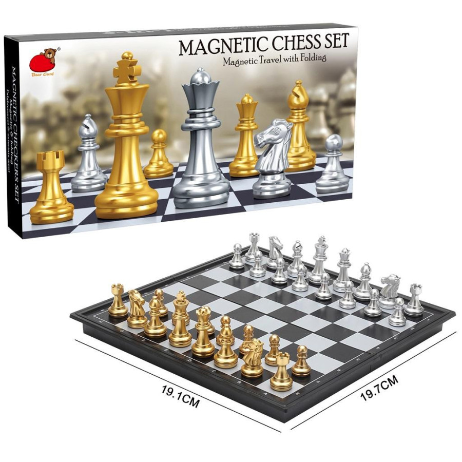 "Szachy to strategiczna gra planszowa rozgrywana przez dwóch graczy na 64-polowej szachownicy za pomocą pionków-figurek. Gra w szachy rozwija umysł i uczy logicznego myślenia Do dyspozycji mamy dwa zestawy figurek białe i czarne. W skład każdego wchodzą figury oraz pionki. Dodatkowym atutem gry jest magnetyczna plansza."