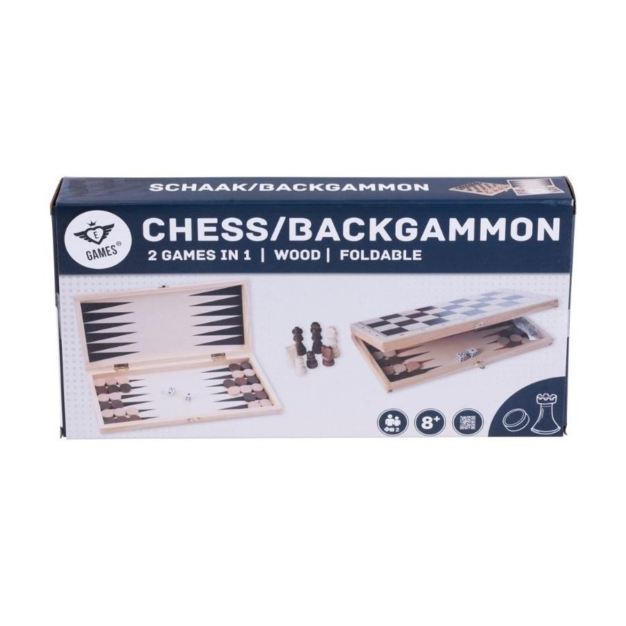 Zestaw szachowy/backgammon wykonany z drewna brzozowego. Zestaw jest składany i dostarczany w kolorowym pudełku. Wysokość króla: 60 mm. Rozmiar figury szachowej: 33 x 33 mm. Rozmiar gry: 29 x 29 cm.