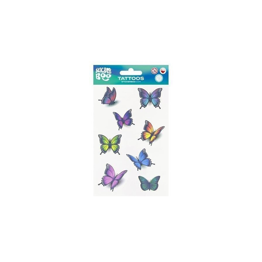 Tatuaże Motylki STICKER BOO z pewnością przypadną do gustu dzieciakom, idealne do zdobienia ciała, dadzą dużo frajdy oraz satysfakcji i wiele możliwości. Łatwe w użyciu! Aby usunąć tatuaż wystarczy tylko użyć oliwki lub mydła.