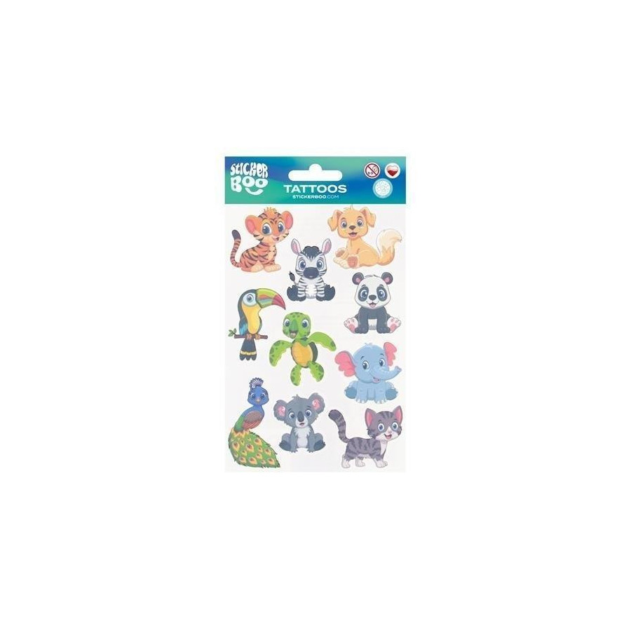 Tatuaże Zwierzęta STICKER BOO z pewnością przypadną do gustu dzieciakom, idealne do zdobienia ciała, dadzą dużo frajdy oraz satysfakcji i wiele możliwości. Łatwe w użyciu! Aby usunąć tatuaż wystarczy tylko użyć oliwki lub mydła.