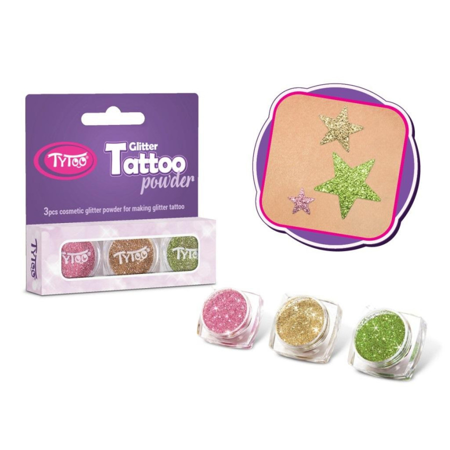 Tytoo to brokatowe pyły do samodzielnego wykonywania niezwykłych, tematycznych i brokatowych tatuaży!