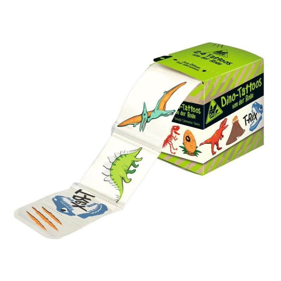 Tatuaże na Rolce, Dinozaury Wyjątkowe tatuaże dla fanów dinozaurów: dzięki 24 fajnym, samoprzylepnym tatuażom z rolki, dzieci mogą tymczasowo ozdobić swoją skórę według własnego uznania. Świetne motywy można łatwo oderwać od rolki i przykleić na wybraną część ciała. Dzięki szkieletowi tyranozaura, pterozaurowi, jaju dinozaura i śladom zadrapań można z dumą pokazać fascynację dinozaurami. Po pewnym czasie tatuaże same schodzą, a nowe motywy mogą zostać naklejone na ramionach, nogach lub dłoniach. Obowiązkowa pozycja dla fanów pradawnych gigantów i świetny prezent do tornistra lub na urodziny dziecka! 24 fajnych, samoprzylepnych tatuaży dla małych fanów dinozaurów. Zawierają wizerunek szkieletu tyranozaura, pterozaura, jajo dinozaura, ślady zadrapań i inne. Poszczególne tatuaże są perforowane i można je łatwo usunąć. Długość rolki: 1 metr. 100% wegańskie tzn. nie posiadają składników pochodzenia zwierzęcego, ani modyfikowanych genetycznie (GMO). Pieczęć Dermatest - "bardzo dobra". Wyprodukowano w Niemczech. Wymiary opakowania: 6 cm x 4, 5 cm 6 cm. Produkt przebadany dermatologicznie, bezpieczny dla konsumenta. Posiada pieczęć gwarancyjną Dermatest. UWAGA: Nie nadają się dla dzieci poniżej 3 roku życia. Ryzyko zadławienia. Produkty Moses są projektowane w Niemczech, ze szczególną dbałością o zrównoważony rozwój dziecka i wykonane z wysokiej jakości materiałów. Zabawki są wytwarzane zgodnie z filozofią "nauka przez zabawę", aktywnie wspierają i stymulują zarówno wyobraźnię jak i edukację dziecka.