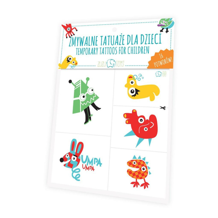 Zestaw 16 zmywalnych tatuaży dla dzieci przedstawiających sympatyczne potwory.?
