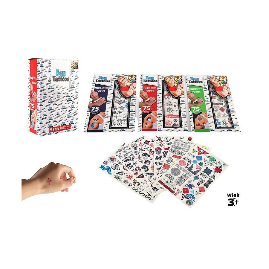 Odkryj skarby kreatywności z Magic Tattoos - tymczasowymi tatuażami o tematyce pirackiej, idealnymi dla odważnych małych poszukiwaczy przygód! Zestaw zawiera 75 różnorodnych tatuaży, które przeniosą dzieci w świat morza, piratów i tajemniczych symboli. Z łatwością aplikowane i bezpieczne dla skóry, te tatuaże są doskonałym sposobem na wyrażenie siebie i udawanie odważnego pirata.