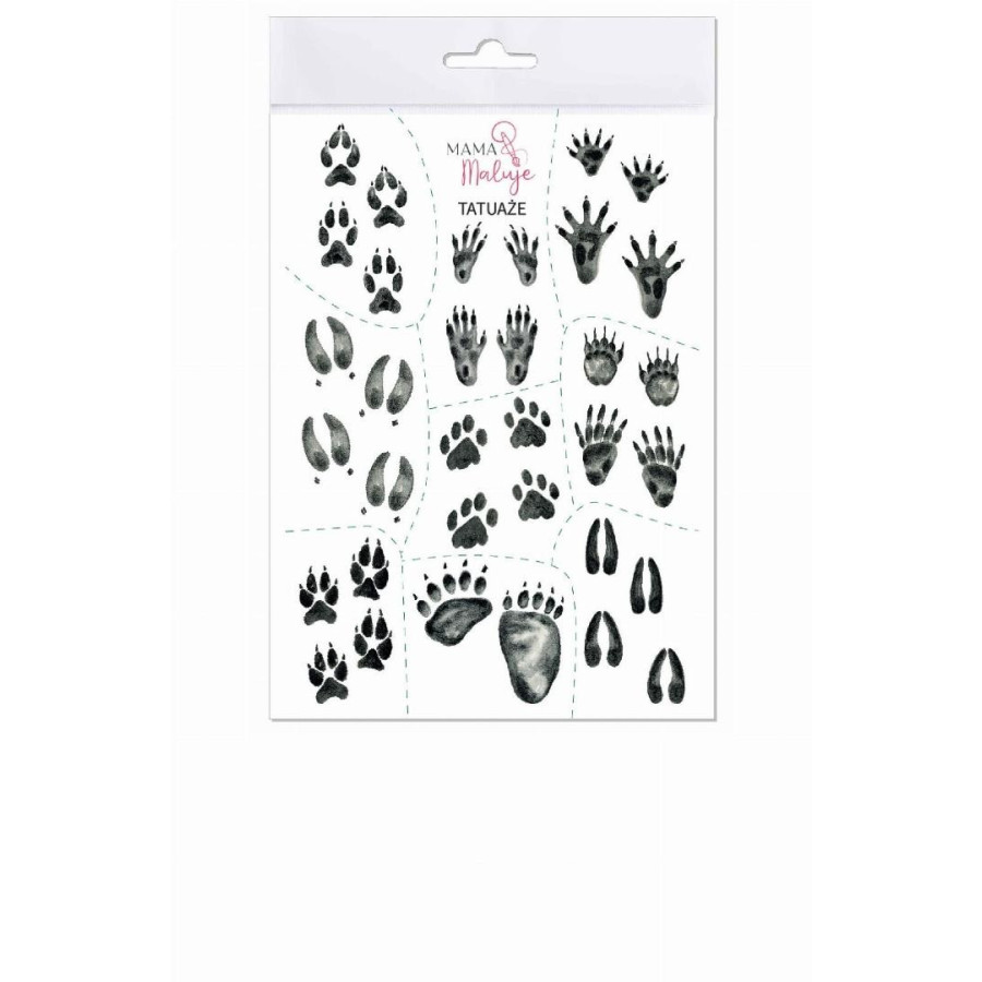 Na arkuszu znajdują się tropy: dzika, sarny, niedźwiedzia, wilka, lisa, rysia, wiewiórki, bobra i borsuka.