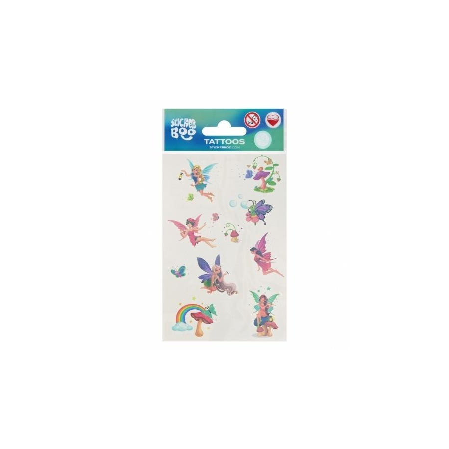 Tatuaże Wróżki STICKER BOO z pewnością przypadną do gustu dzieciakom, idealne do zdobienia ciała, dadzą dużo frajdy oraz satysfakcji i wiele możliwości. Łatwe w użyciu! Aby usunąć tatuaż wystarczy tylko użyć oliwki lub mydła. Zawartość zestawu: 1 arkusz z 10 tatuażami mix wzorów.