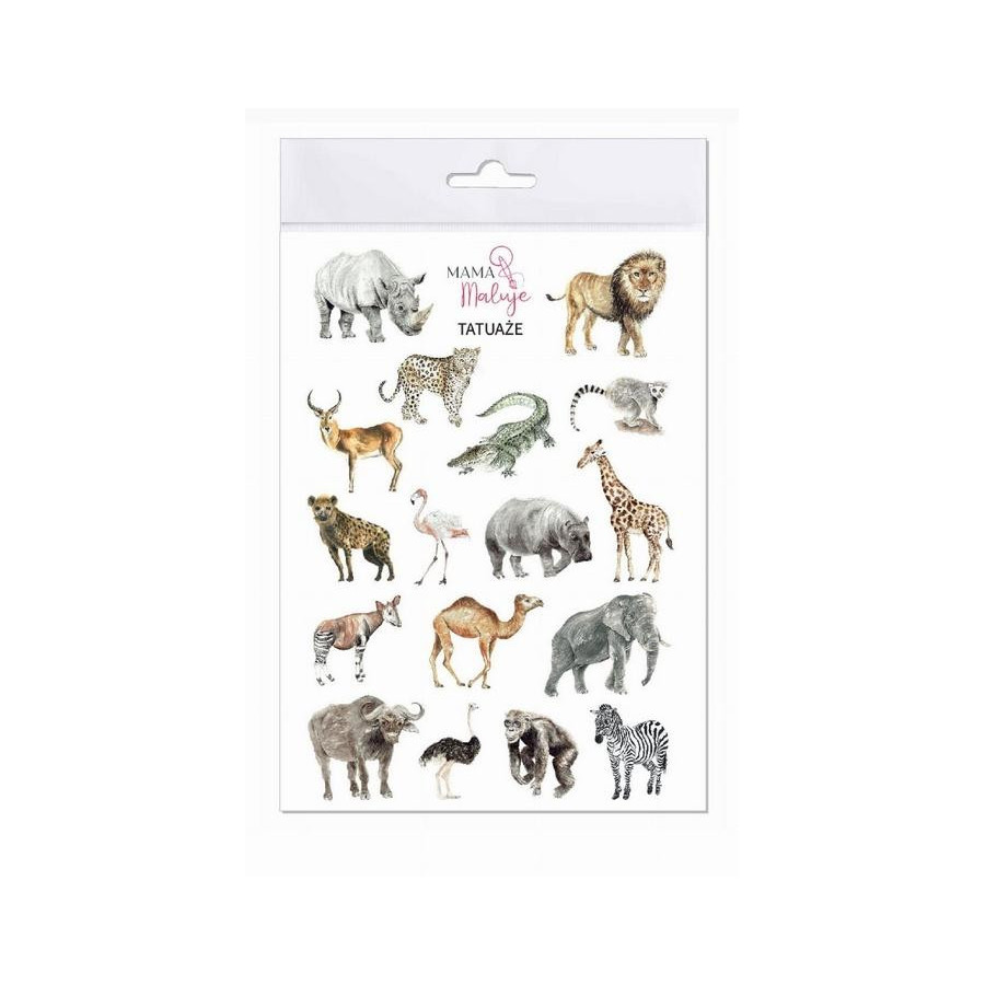 Tatuaże zmywalne Zwierzęta Afryki zostały wykonane na podstawie ręcznie malowanych ilustracji akwarelowych.