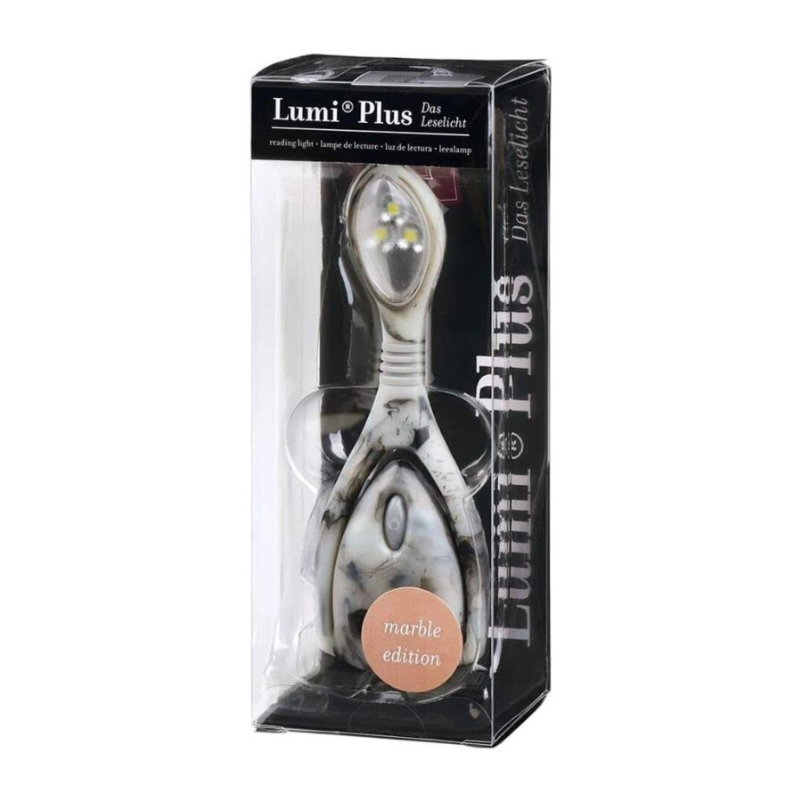 Płynnie Ściemniana Lampka Do Czytania, Lumi Plus, szary marmur Lumi Plus: mobilna i elastyczna lampka do czytania umożliwia czytanie w ciemności bez zakłócania snu osoby obok Ciebie. Lampka do czytania Lumi Plus wyraża pasję każdego miłośnika książek do czytania. Płynnie ściemniana. Technologia SMD LED. Wysoka jakość wykonania. Zapewnia zarówno wysoki komfort czytania, jak i optymalną wydajność czytania dzięki silnej wiązce światła. Lekka głowica z trzema diodami ma elastyczną szyjkę do obracania o 360 . Wygodny mocny klips do przymocowania na kartach książki, który w razie potrzeby postawienia, po złożeniu daje stabilną podstawę. Miękka i aksamitna w dotyku powierzchnia. Zasilanie 2 baterie CR2450, zawarte w zestawie. Czas świecenia ok. 18 godzin. Elastyczna konstrukcja szyjki gwarantuje, że nie świeci prosto w oczy. Wymiary produktu: 4,5 cm x 13 cm x 2,3 cm. Wymiary opakowania: 6 cm x 15,8 cm 5 cm.