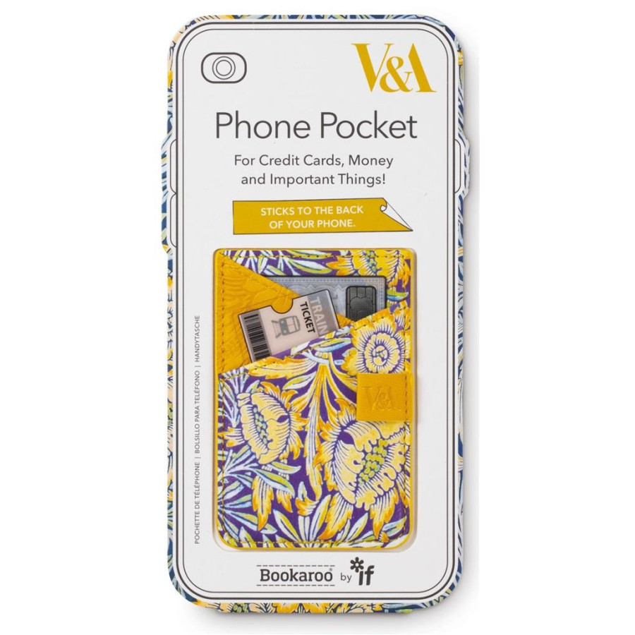 Portfel przyklejany na tył smarftona. Pomieści karty kredytowe, pieniądze, bilety, czy też inne ważne przedmioty. Posiada 2 kieszenie i pasuje do większości rodzajów telefonów. Wzór z kolekcji V&A - Muzeum Wiktorii i Alberta.