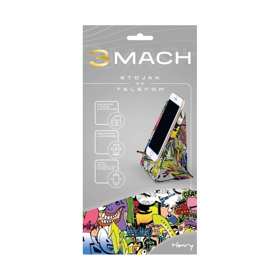Stojak na telefon wykonany ze sztywnego kartonu. Telefon można stawiać w pionie i poziomie. Stojak pokryt matową folią soft touch zapobiegającą przesuwaniu się telefonu. Dodatkowo w zestawie znajduje się pasek żywiczny podtrzymujący telefon. Stojak do samodzielnego złożenia. Zapakowany z płaskie