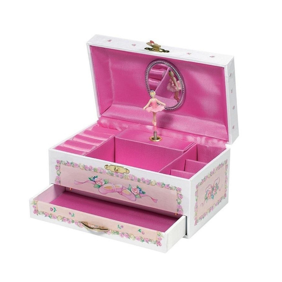 Prześliczna pozytywka-szkatułka na skarby małej damy. Po otwarciu szkatułki baletnica zaczyna tańczyć do pięknej melodii z Jeziora Łabędzi. Pozytywka wykoanana jest ze stabilnej tektury.