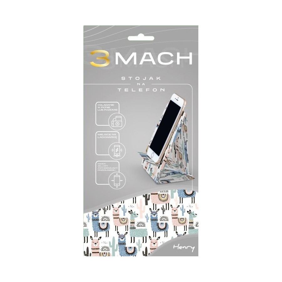 Stojak na telefon wykonany ze sztywnego kartonu. Telefon można stawiać w pionie i poziomie. Stojak pokryt matową folią soft touch zapobiegającą przesuwaniu się telefonu. Dodatkowo w zestawie znajduje się pasek żywiczny podtrzymujący telefon. Stojak do samodzielnego złożenia. Zapakowany z płaskie pudełko z otwieraniem na dole i euro zawieszką. Na odwrocie opakowania znajduje się instrukcja złożenia. Stojak posiada miejsce na podłączenie ładowarki.