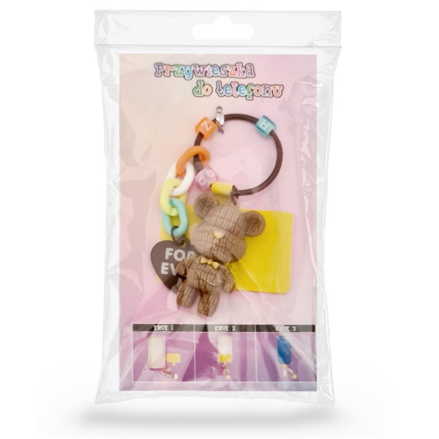 Przywieszka wyposażona jest w miękką, prostokątną wkładkę, którą umieszcza się pod obudową/etui telefonu na dole przy wejściu do ładowania. Pętelkę, którą zakończona jest prostokątna wkładka należny przełożyć przez dziurę w obudowie/etui telefonu przeznaczoną na kabel ładujący.