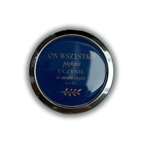 Odkryj siłę codziennej inspiracji z naszym okrągłym, metalowym lusterkiem kieszonkowym z wersetem biblijnym.