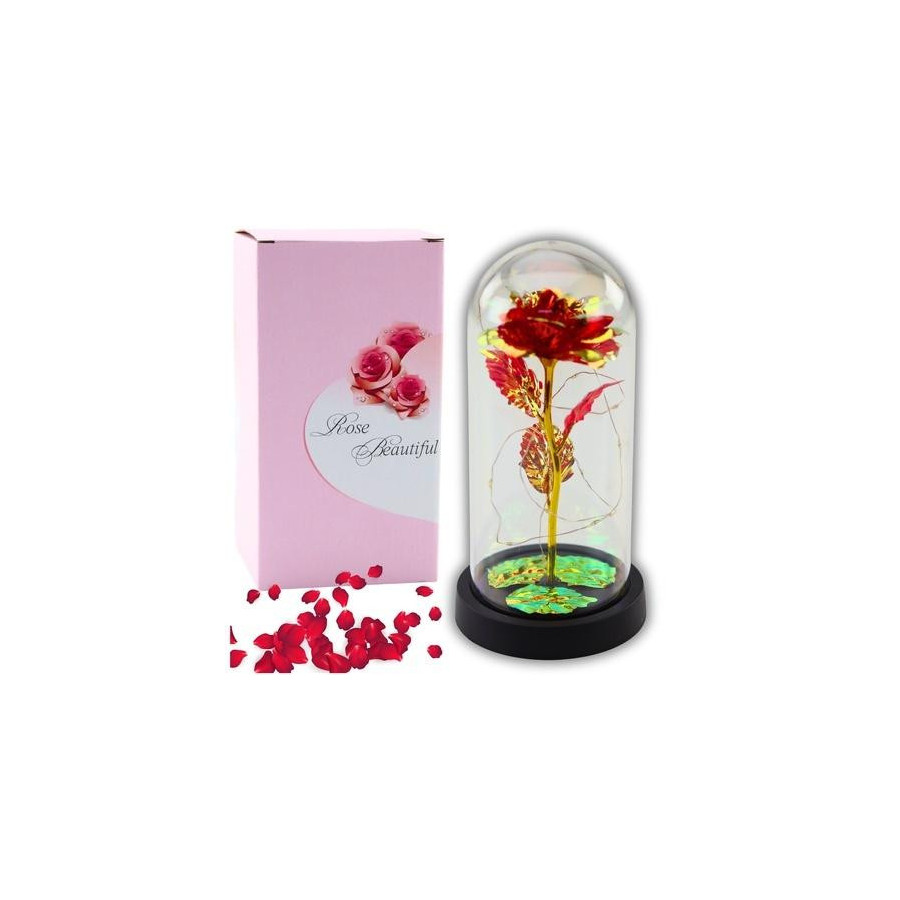 Wieczna Kryształowa Róża w Kopule z Oświetleniem LED - Czerwona Wieczna róża w kopule z oświetleniem LED to elegancki i symboliczny prezent, który wyrazi Twoje uczucia i doda wyjątkowego charakteru każdemu wnętrzu. Jej mieniące się kolory pod wpływem subtelnego światła LED tworzą niepowtarzalną atmosferę, idealną na romantyczne okazje. KLUCZOWE CECHY PRODUKTU Wieczna róża Symbol miłości i uczucia, który nigdy nie przemija. Róża zachowuje swoje piękno na zawsze, nie wymagając żadnej pielęgnacji. Oświetlenie LED Delikatne światło LED podkreśla piękno róży i tworzy ciepły nastrój, idealny do dekoracji wnętrz i romantycznych chwil. Kopuła Elegancka osłona, która chroni różę i pozwala cieszyć się jej urokiem z każdej strony. Plastikowa podstawka Solidna i stabilna podstawka, zapewniająca bezpieczeństwo i estetykę prezentu. SPECYFIKACJA Wymiary kopuły: 11 cm x 21 cm Źródło zasilania: 3 x AAA (baterie nie są dołączone) Materiał róży: Wysokiej jakości tworzywo sztuczne Podstawka: Plastik Oświetlenie: 20 diod LED o ciepłym białym świetle Opakowanie: Prezentowe pudełko Wymiary opakowania: 22 cm x 12 cm x 12 cm Kolor róży: Czerwony ZAWARTOŚĆ ZESTAWU Wieczna czerwona róża w kopule Lampki LED Plastikowa podstawka Prezentowe pudełko DODATKOWE ATUTY Unikalny design - Perfekcyjnie odwzorowana róża z naturalnym wyglądem, idealna do dekoracji wnętrz. Symbolika - Wieczna róża symbolizuje trwałe uczucie i miłość, czyniąc ją idealnym prezentem na każdą okazję. Łatwość obsługi - Proste włączanie i wyłączanie światełek LED, zapewniające wygodę użytkowania. Ekskluzywna jakość - Dopracowane detale i staranne wykonanie sprawiają, że róża prezentuje się luksusowo.