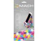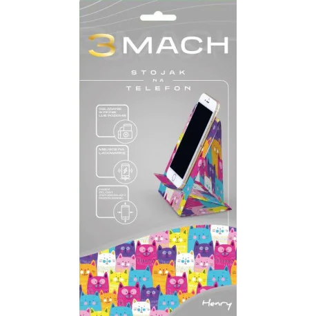 Stojak na telefon wykonany ze sztywnego kartonu. Telefon można stawiać w pionie i poziomie. Stojak pokryt matową folią soft touch zapobiegającą przesuwaniu się telefonu. Dodatkowo w zestawie znajduje się pasek żywiczny podtrzymujący telefon. Stojak do samodzielnego złożenia. Zapakowany z płaskie pudełko z otwieraniem na dole i euro zawieszką. Na odwrocie opakowania znajduje się instrukcja złożenia. Stojak posiada miejsce na podłączenie ładowarki.