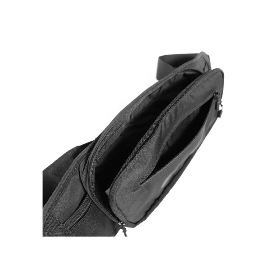 Ma dwie kieszenie zapinane na zamek do przechowywania rzeczy oraz regulowany pasek umożliwiający indywidualne dopasowanie.