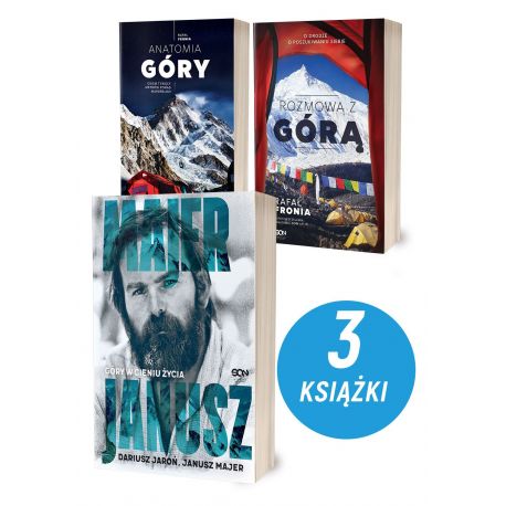 Pakiet zawiera książki sportowe "Janusz Majer. Góry w cieniu życia" "Anatomia góry" oraz "Rozmowa z Górą"