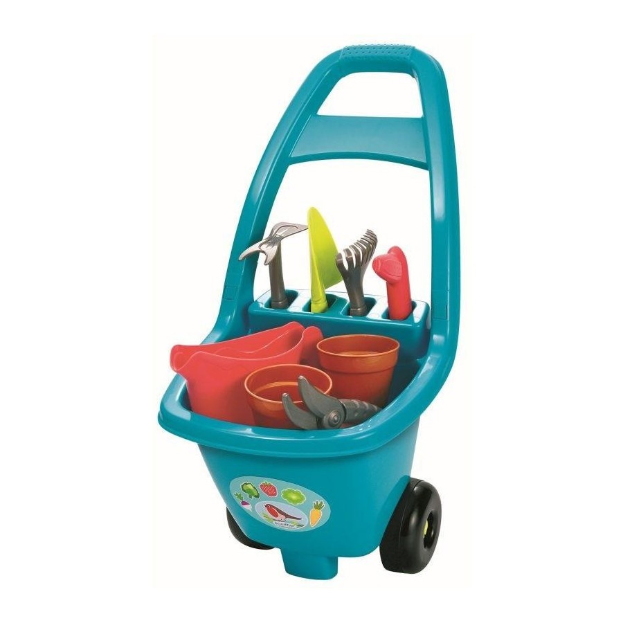 Kolorowy zestaw zabawek do ogrodu to doskonała propozycja dla maluchów na ciepłe, wiosenno-letnie dni. Zestaw zawiera wózek z dwoma kółkami i wygodnym uchwytem, w którym dziecko może przewozić narzędzia ogrodnicze. W zestawie znajdują się także grabki, łopatka, motyczka, sekator, konewka, 2 doniczki i imitacja pistoletu zraszającego. Zabawki zostały wykonane z wysokiej jakości, bezpiecznych materiałów. Ładna, żywa kolorystyka na pewno spodoba się każdemu maluchowi, który naśladując rodziców - zostanie małym ogrodnikiem!