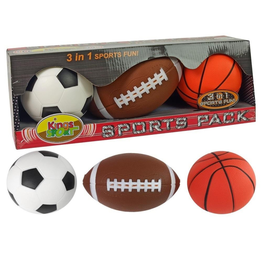 Zestaw składa się z trzech miękkich piłeczek, sprawdzą się zarówno wewnątrz, pozwalając na zabawę w domu lub przedszkolu, jak i poza czterema ścianami. Tworzywo, z jakiego zostały wykonane piłki, jest bardzo miękkie i przyjemne w dotyku. Piłki utrzymane są barwach charakterystycznych do piłek poszczególnych gier zespołowych, co będzie kolejnym bodźcem dla malucha. Kilkulatek będzie mógł naśladować dorosłych, którzy uwielbiają gry zespołowe takie jak: piłka nożna, koszykówka czy baseball.