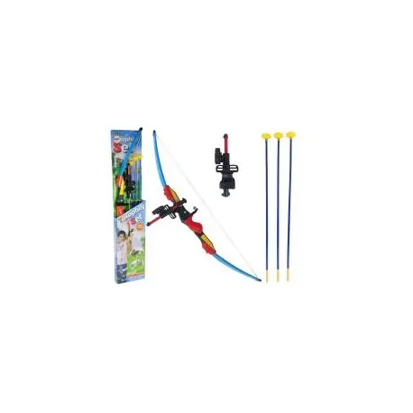 Zestaw Łuczniczy Łuk Strzały Celownik Łucznictwo to ciekawa dziedzina sportowa dla dzieci. Łuk będzie świetną rozrywką dla dzieci, które chcą wcielić w rolę łucznika i zostać małym Robin Hoodem, bądź Indianinem. Zestaw sprawdzi się również na przebranie na bal karnawałowy bądź urodzinowy imprezę z motywem przebrań. Kolejną zaletą to pozytywny rozwój dziecka i zachęta do spędzania czasu na świeżym powietrzu. Wysiłek fizyczny nie będzie już taki zły, łącząc z zabawą, będzie budził pozytywne odczucia. Rozwinie sprawność manualną i koordynację ruchową oraz celność i refleks dziecka. Zabawkowy łuk jest idealną zabawką na wiosenne i letnie ciepłe dni, podczas których maluch może do upadłego bawić się na świeżym powietrzu. Przyssawki znajdujące się na zakończeniach strzał są bezpiecznie i z łatwością przykleją się do gładkiej powierzchni, nie pozostawiając na niej żadnych śladów. Wyglądem przypomina prawdziwe łuki, co może pozytywnie wpływać na odczucia dzieciaka, zachęcając go do świetnej zabawy. Żywe kolory i mocna konstrukcja łuku z pewnością zachęcą do podjęcia wyzwania. Łuk posiada elementy świetlne, dzięki załączonemu do zestawu celownikowi ze światłem, co będzie dodatkową atrakcją. Zestaw dla małego łucznika składa się z: - łuku sportowy - 3 strzały, - celownik ze światłem Wymiary elementów zestawu: - łuk: 98 cm x 12 cm x 4 cm - strzały: długość 60 cm Wymiary opakowania: 98 cm x 20 cm x 5 cm Łuk zasilany dwoma bateriami 3 AG10, dołączone do zestawu. Zgodne z normą EN71 i certyfikatem CE. Przeznaczony dla dzieci powyżej 3 roku życia.