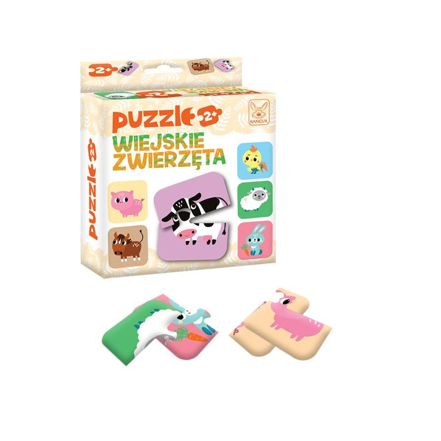 Dzieci bawią się w układanie połówek puzzli wiejskich zwierząt. Gra wspomaga koncentrację, rozwój ruchu dłoni, oraz myślenie przestrzenne