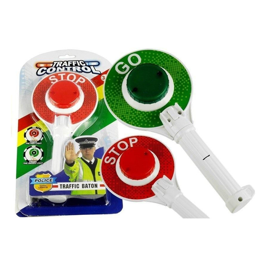 Lizak Policyjny Drogowy Świecący Dwustronny Świetna zabawka dla każdego małego chłopca, który w przyszłości planuje zostać policjantem. Z naszym lizakiem może poczuć się nim już dziś! Zabawkowy lizak ułatwi skompletowanie stroju stróża prawa, a także urozmaici każdą zabawę. Z takim wyposażeniem dziecko będzie mogło wczuć się w rolę policjanta, nadzorując ruch domowej kolekcji autek. Zabawy z wykorzystaniem tego produktu wpłyną na rozwój cech koniecznych do prawidłowego funkcjonowanie w społeczeństwie. Policyjny lizak został wykonany z plastiku i jest dwustronny. Jedna strona ma czerwony akcent, natomiast druga zielony. Po każdej stronie znajduje się guziczek, który po wciśnięciu powoduje zapalenie lampki po przeciwnej stronie zabawki. Efekty świetlne dodadzą każdej zabawie realnego i oryginalnego wymiaru. Policyjna zabawka pomoże w nauce zasad ruchu drogowego. Dzięki niej dziecko zrozumie, że kolor czerwony nakazuje zatrzymanie się, a zielony pozwala na jazdę. Zabawka przyszłego policjanta wyposażona jest w dwie sztuki baterii AA, które znajdują się już w zabawce. Wymiary zabawki: - 24 cm x 12 cm x 4,5 cm. Wymiary opakowania: - 17,5 cm x 32,5 cm.