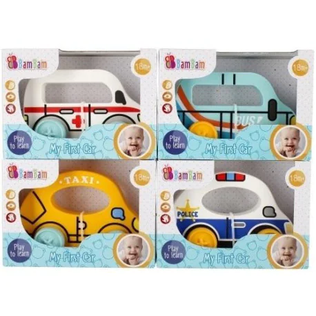 Zabawka edukacyjna POJAZD MIEJSKI AMBULANS, POLICJA, TAXI, BUS BAM BAM to idealna zabawka dla każdego fana motoryzacji, a przy tym wykazującego się empatią i potrzebą niesienia pomocy innym. Pojazdy mają charakterystyczne znaki, kolory jak np. dla karetki biały kolor, zaznaczone atrybuty ambulansu czy policji niebiesko-czerwone charakterystyczne znaki i atrybuty każdego policyjnego pojazdu. Dodatkowo każdy z pojazdów posiada uchwyt ułatwiający zabawę tym uroczym samochodzikiem. Szeroko rozstawione koła umożliwiają łatwe prowadzenia autka, a mechanizm napędu po odciągnięciu go do tylu- wprawia w samoistny ruch. Podczas beztroskiej zabawy dziecko rozwija szereg funkcji poznawczych jak zmysł słuchu, wzroku, dotyku, popychając autko trenuje sprawność manualną czy koordynację oko- ręka. Pobudza także wyobraźnię, a niejednokrotnie i zdolności wokalne. Pojazd wykonany jest z wysokiej jakości plastiku, certyfikowanych materiałów. Wymiary/waga/baterie: wymiary produktu (dł. x wys. x gł.)[cm]: 16x10x6, wymiary opakowania (dł. x wys. x gł.)[cm]: 19x14x8, waga produktu bez opakowania [kg]: 0,11 kg, waga produktu w opakowaniu [kg]: 0,19 kg, nie wymaga zasilania bateriami. Zabawka przeznaczona dla dzieci w wieku: 18m+. Pakowana w kartonik z odkrytym okienkiem.